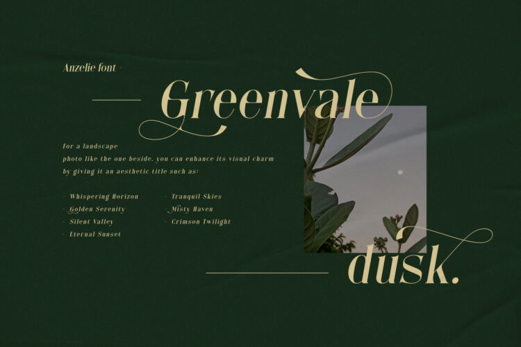 Anzelie is an elegant stylish serif font that blends timeless sophistication with modern charm. Featuring graceful alternates and unique ligatures, Anzelie is perfect for luxury branding, editorial design, packaging, fashion campaigns, and wedding invitations. Its refined details and smooth curves bring a sense of exclusivity and artistry to every project. With multilingual support, Anzelie ensures your designs remain versatile and professional across global audiences.