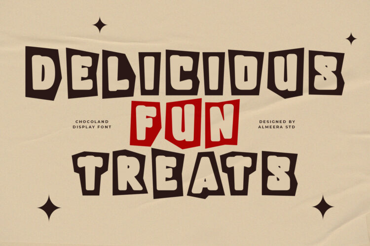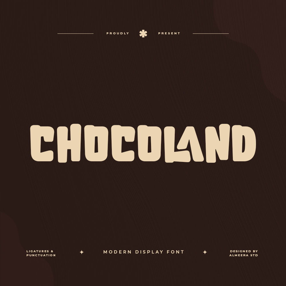 Chocoland is a deliciously modern display font inspired by bold chocolate packaging and playful branding. With chunky forms and soft edges, it adds a sweet yet confident touch to any design. Perfect for food packaging, posters, logos, and eye-catching headlines, Chocoland brings both fun and modern appeal to your creative projects.
