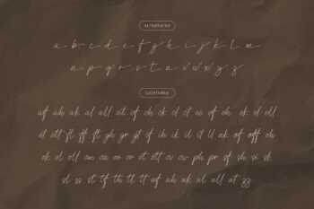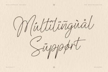 This typeface includes alternates & ligatures for realistic letter combinations and multilingual support for international versatility. Hollywood Secret is the perfect choice for those seeking a relaxed yet refined handwritten aesthetic.