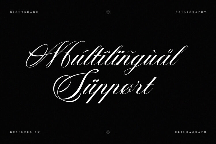 Nightshade is an elegant calligraphy script font crafted with flowing strokes and graceful curves. Inspired by classic handwritten lettering and refined calligraphic forms, Nightshade delivers a sophisticated and romantic feel while remaining clean and legible.