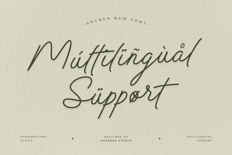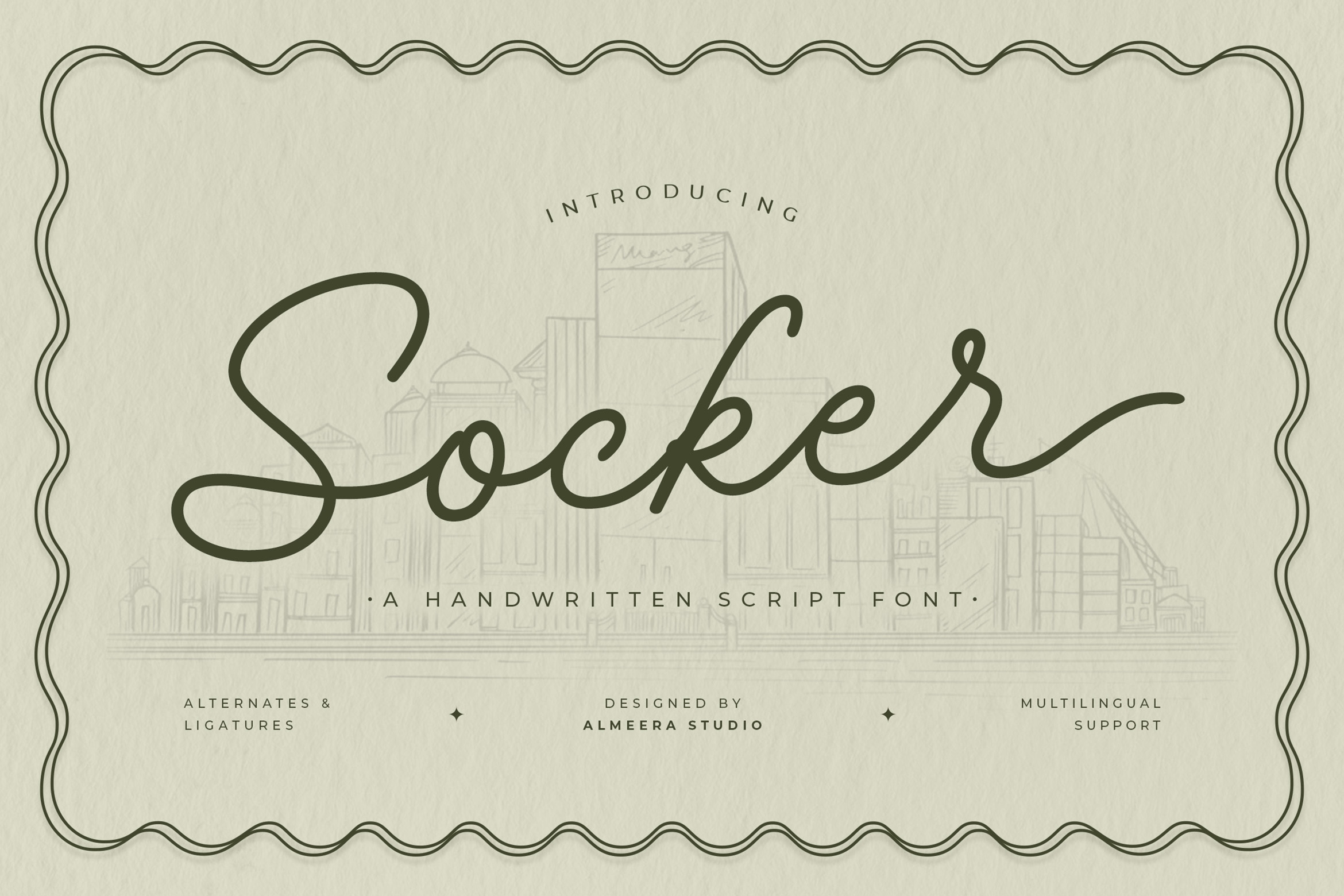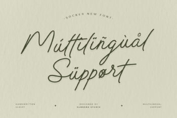 Socker is a handwritten script font that combines casual modern handwriting with a confident flow. Its rounded curves and balanced proportions give a friendly yet professional appearance, making it ideal for branding, packaging, invitations, and editorial projects.