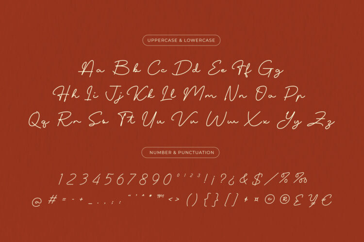 This font comes with a rich set of alternates and ligatures, allowing you to create natural and dynamic lettering compositions. It also includes multilingual support, making it versatile for global use. Every detail is crafted with precision to offer a flexible and refined typographic experience, ideal for modern designers who value character and sophistication.