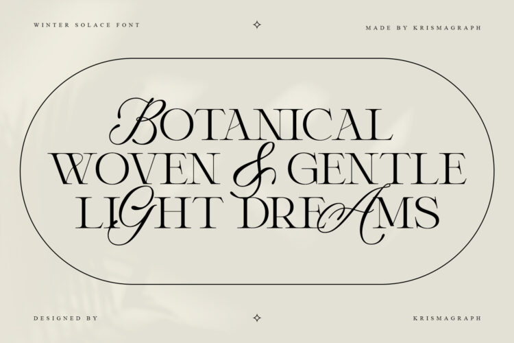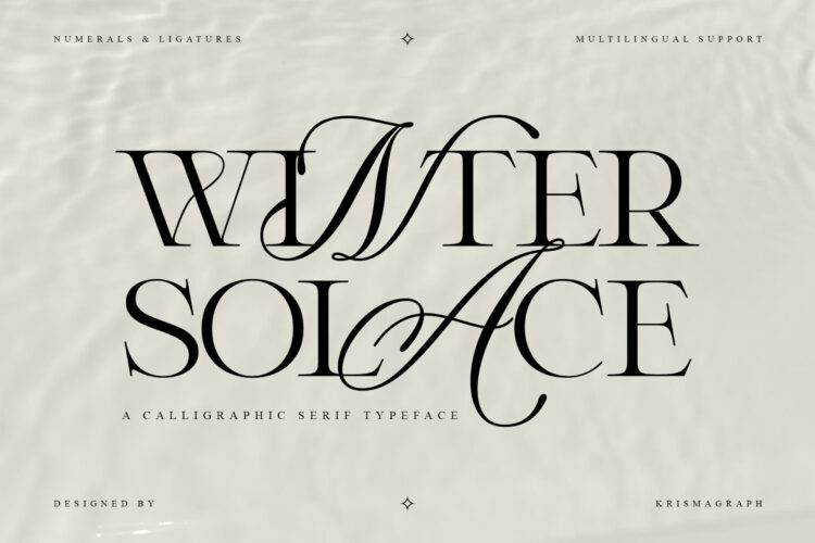 Winter Solace is a calligraphic serif typeface that embodies sophistication and artistry. Its graceful contrast between thick and thin strokes creates a refined visual rhythm — making it ideal for editorial layouts, branding, luxury packaging, and high-end design projects.