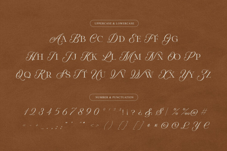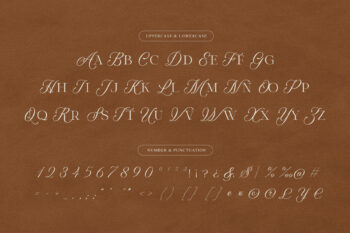 Featuring elegant ligatures and numerals, this typeface combines classical calligraphic details with modern serif structure, resulting in a timeless and striking look. Perfect for designers who seek beauty, balance, and authority in typography.